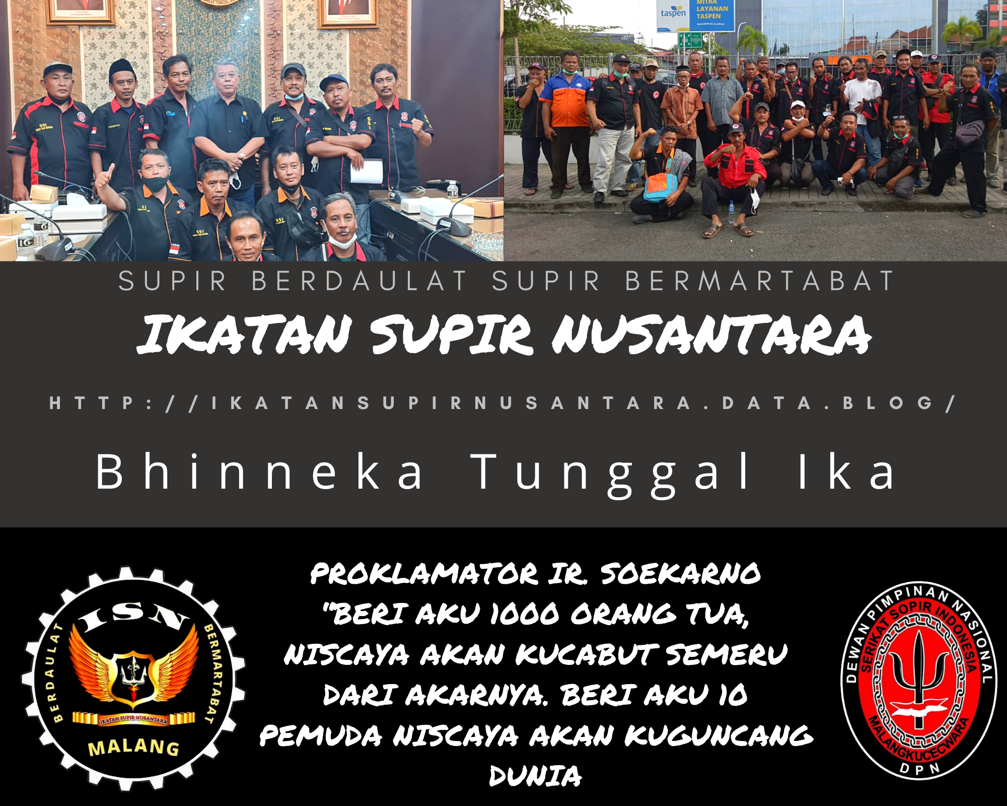 IKATAN SUPIR NUSANTARA merupakan salah satu organisasi pergerakan untuk menjadi inspirasi atau mendorong terbentuknya organisasi-organisasi lainnya